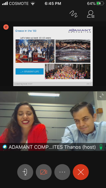 Την Παρασκευή, 16 Οκτωβρίου 2020 πραγματοποιήθηκε η ομλία με θέμα "Αναπτύσσοντας διαστημικές κατασκευές και τεχνολογίες αποθήκευσης ενέργειας στην Ελλάδα: Εμπειρίες, Επιτυχίες και Διδάγματα", από τους, Δρ. Θάνος Μπαλτόπουλος συνιδρυτής της Adamant Composites Ltd., και κα. Ζαμπία Καλογρίδη Chief Operating Officer (COO) της Pleione Energy S.A.