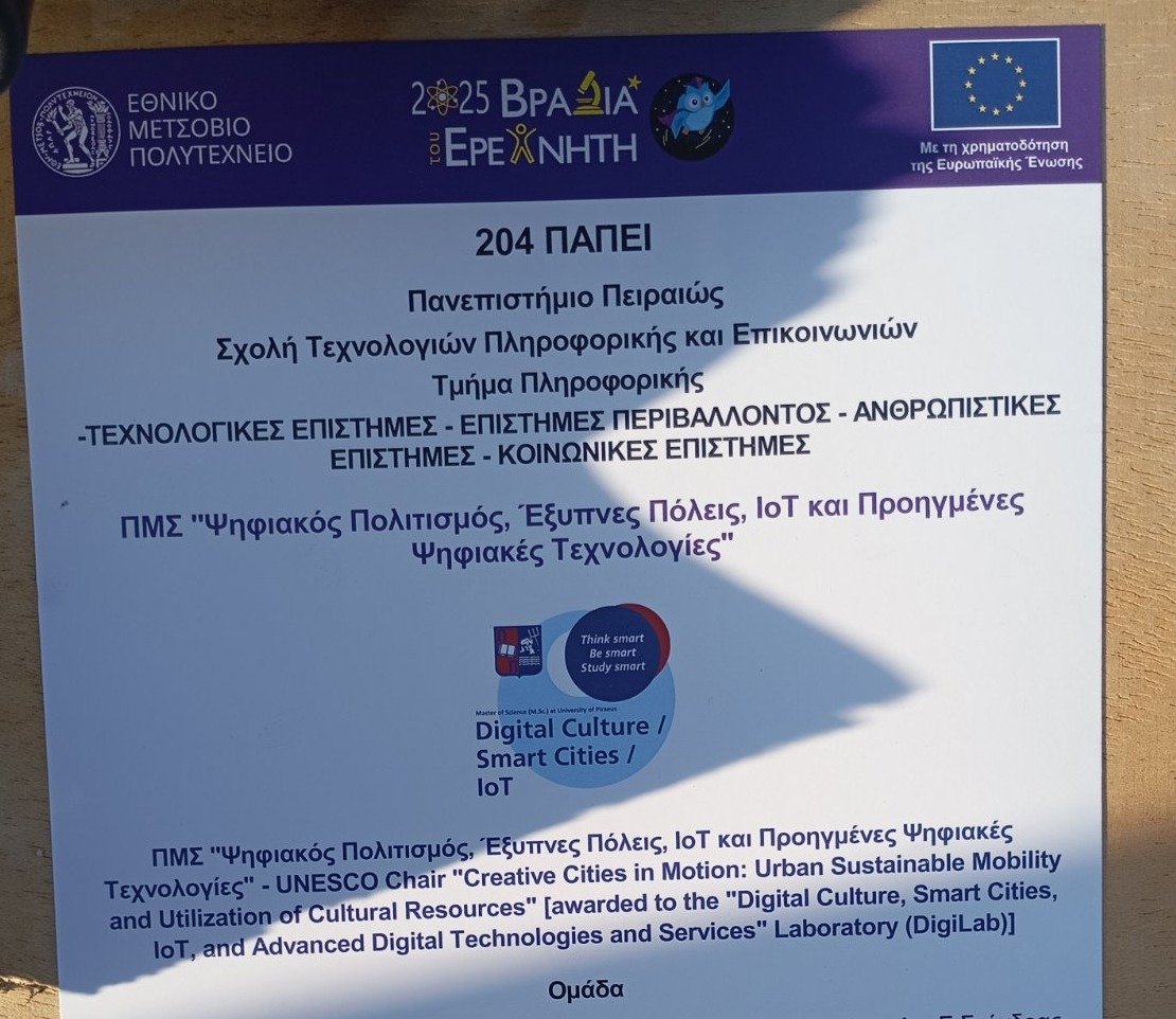 Το ΠΜΣ Ψηφιακός Πολιτισμός, Έξυπνες Πόλεις, IoT & Προηγμένες Τεχνολογίες στη Βραδιά του Ερευνητή 2025!